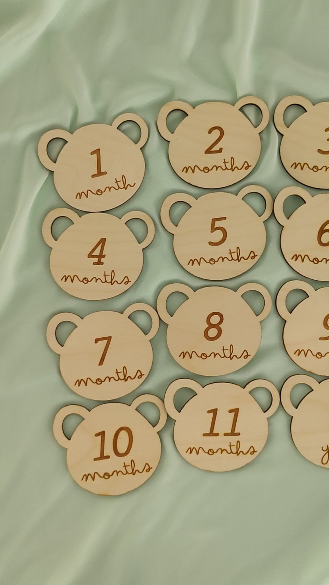 Get a 'beary' cute way to track your baby's milestones with our teddy bear shaped set of 12 monthly milestones. From one month to one year, each bear milestone has cut out ears and the one year card has a balloon for a fun twist. Perfect for capturing those precious moments!