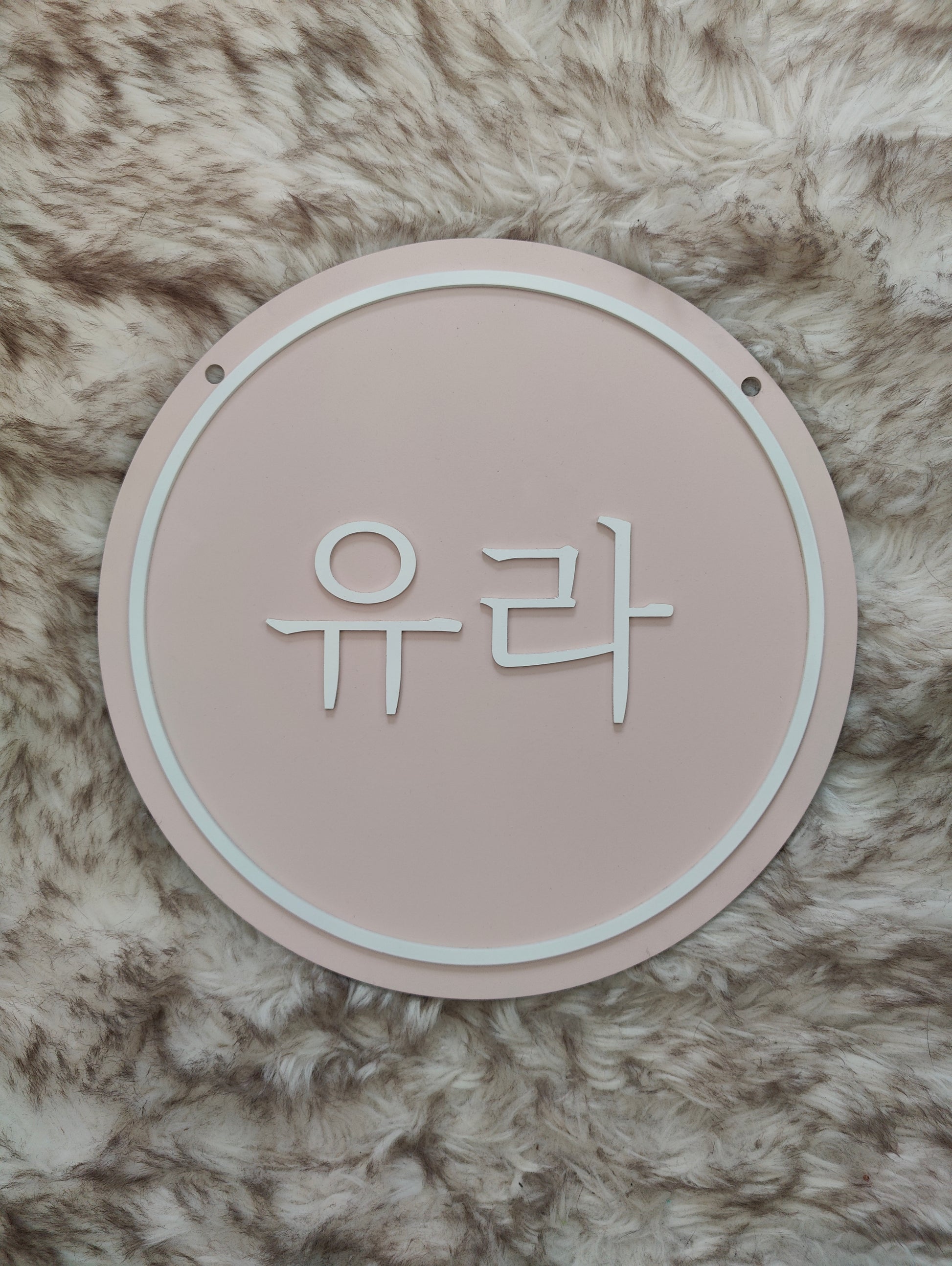 This custom round Korean name sign adds a personal touch to any birthday or event. It is the perfect decoration or gift for those who are proud of their heritage. Show your love and pride with this unique sign that will make a statement in any room!